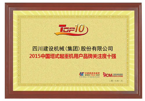 川建榮獲“2015中國(guó)塔式起重機(jī)用戶品牌關(guān)注度十強(qiáng)”