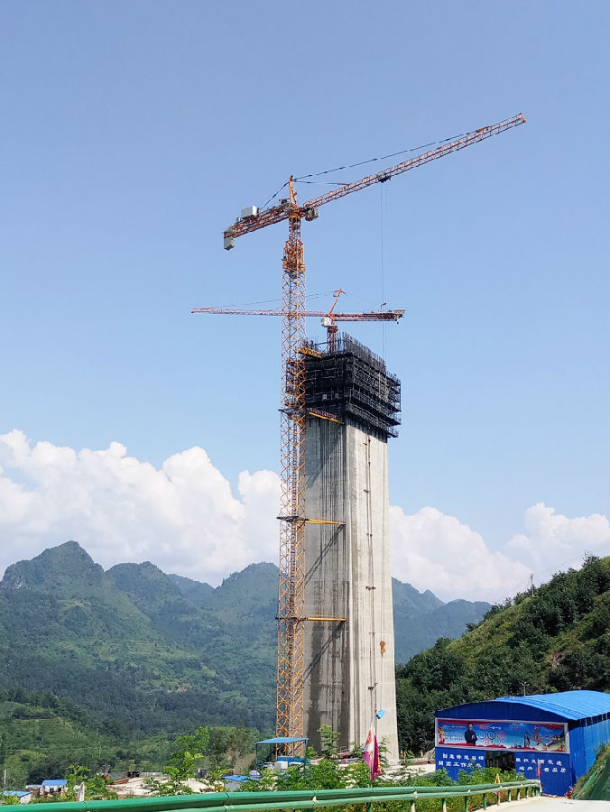 平塘特大橋?qū)儆谛崩瓨虻囊环N,橋塔由混凝土修建,索塔將建設(shè)成鉆石形空間塔,即全橋立三個巨型塔體,每座塔的造型均為兩個倒A字形的塔柱組合而成,在三個塔的兩面又分別架設(shè)數(shù)十組不銹鋼鋼索,遠處觀摩,整座橋好似三顆金光閃閃的巨型“鉆石”鑲嵌在大橋上,非常的雄偉、瑰麗。其中最大的塔體塔高為328米,這個高度相當(dāng)于110層高樓,在大橋完工后就將成為高混凝土橋塔的世界第一;在不分橋型的情況下,平塘特大橋的塔高將刷新已建成的橋梁,將成為亞洲第一高橋。
